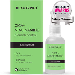 Improving texture, and preventing breakouts, this BEAUTYPRO Cica + Niacinamide Blemish Control Serum harnesses the power of niacinamide, cica and chia seed to soothe, calm, and balance skin prone to acne and blemishes, the vitamin and antioxidant-packed formula revealing a healthy and radiant complexion.