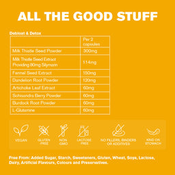 Take two capsules each day. Debloat & Detox can be taken at anytime of day. For best results, take your capsules together or separately with or after your main meals of the day.