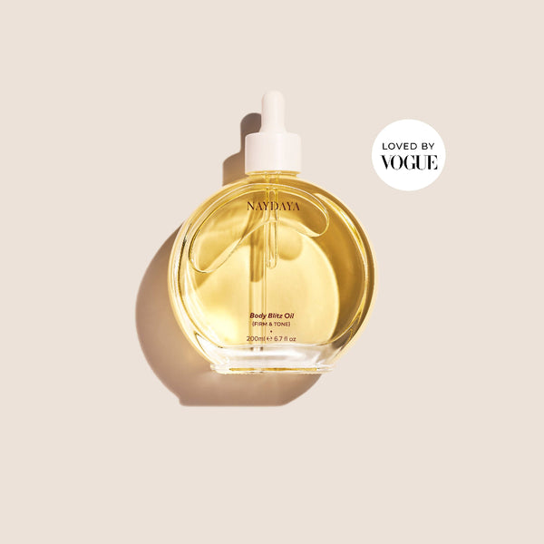 Naydaya Body Blitz is packed with ingredients usually reserved for facial skincare, delivering advanced hydration while working to firm and smooth your body's skin. This luxurious body oil helps replenish lost moisture, restore plumpness, and support collagen production.
