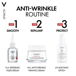 With a hydrating formula that includes Vichy volcanic water, rhamnose, and caffeine, Vichy Liftactiv Supreme Cream For Normal To Combination Skin smooths away wrinkles and makes the skin appear lifted.